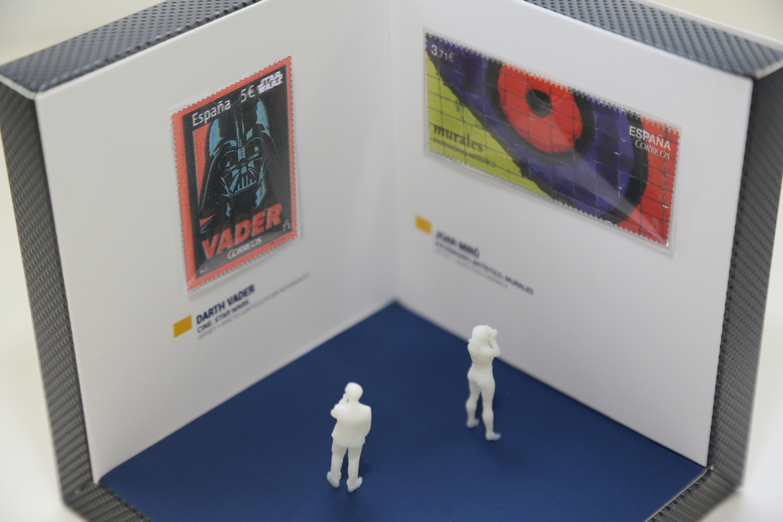 Además, se fabricaron 4 tipos diferentes de sobres transparentes para albergar cada sello de colección completando la caja con un sistema de imanes oculto para su montaje en cerrado y abierto.