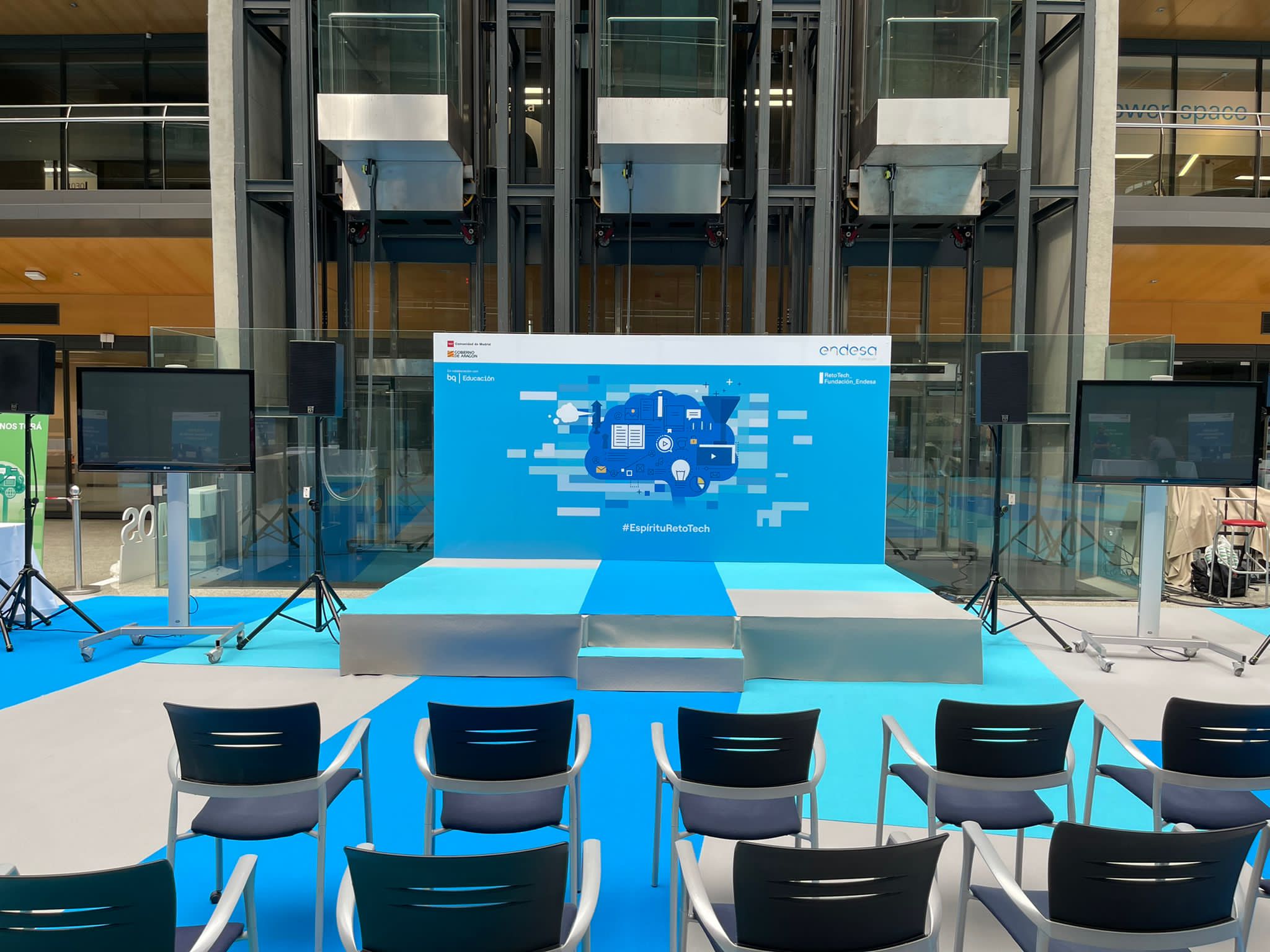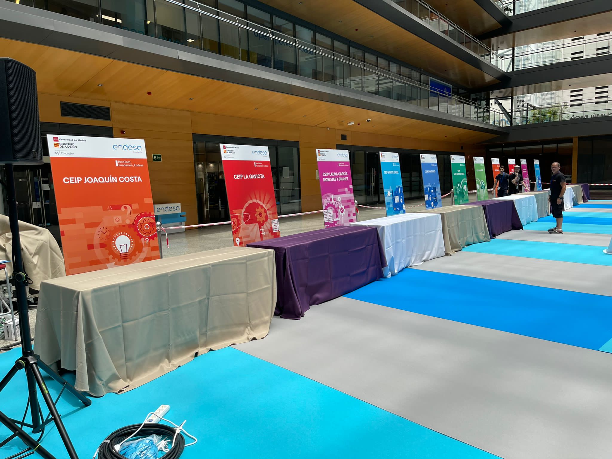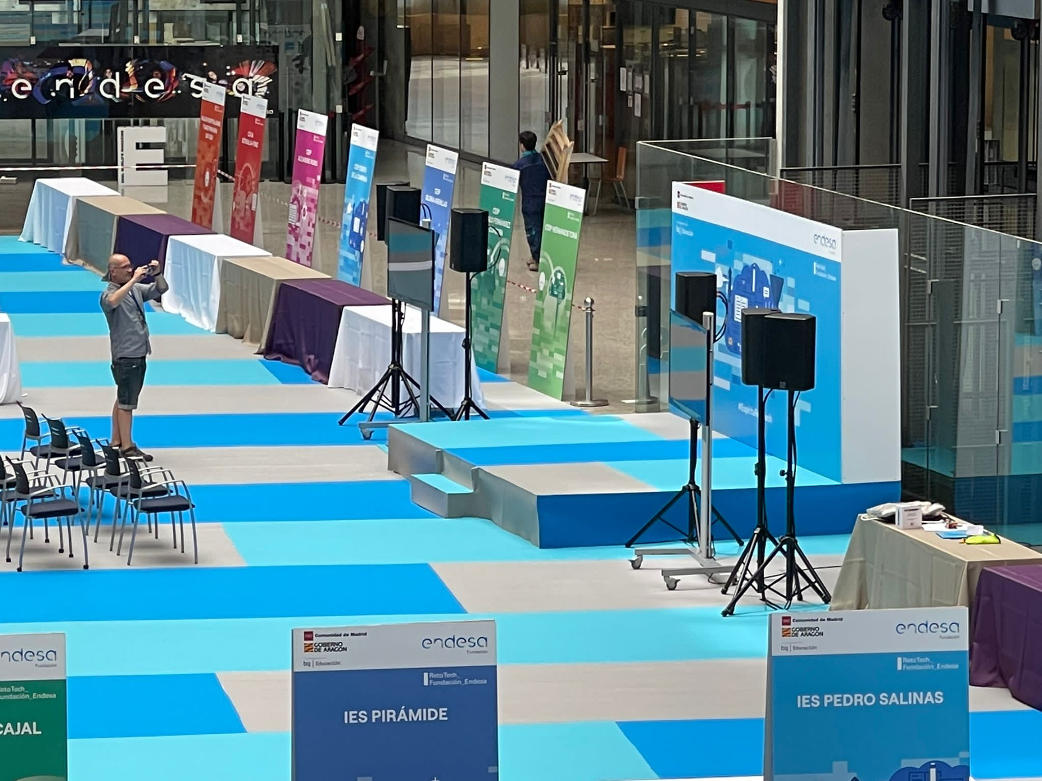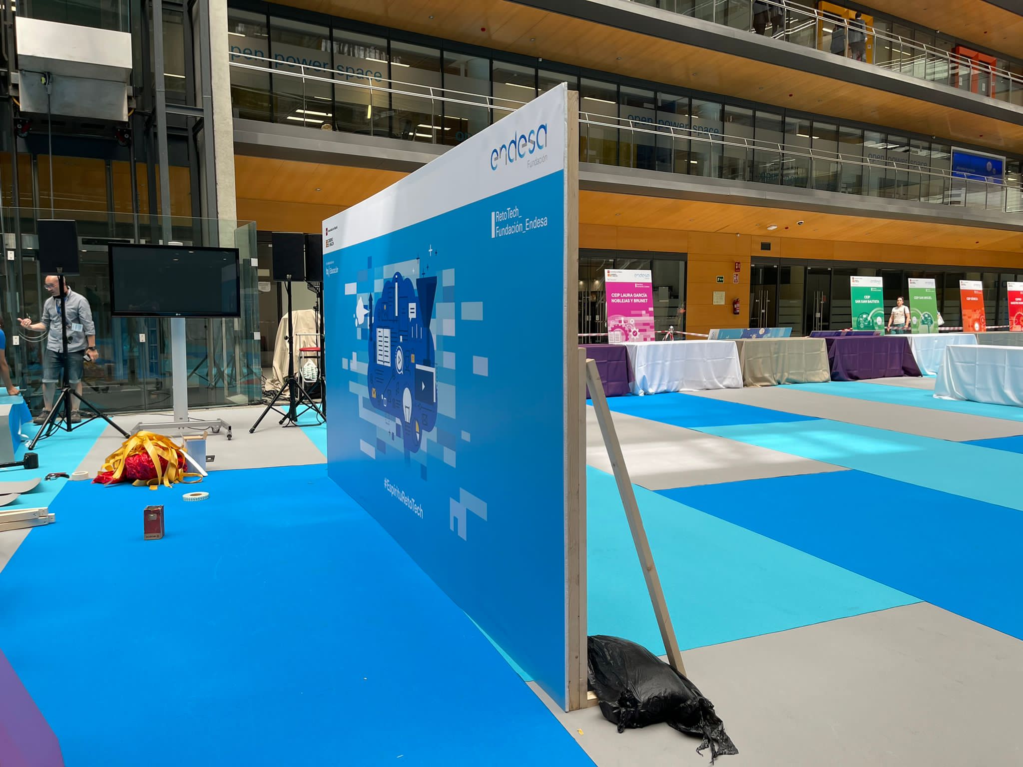 Gracias a la agencia Flash2Flash tuvimos la oportunidad de producir y montar los elementos de decoración en la sede central de ENDESA. Fue un trabajo como siempre realizado con unos timming muy ajustados y en materiales de la máxima calidad: madera, nido de abeja, impresión en tela para trasera del escenario. Por si fuera poco, nuestros montadores dejaron el escenario y la decoración en las mejores condiciones para el disfrute de los colegios que asistieron a este evento