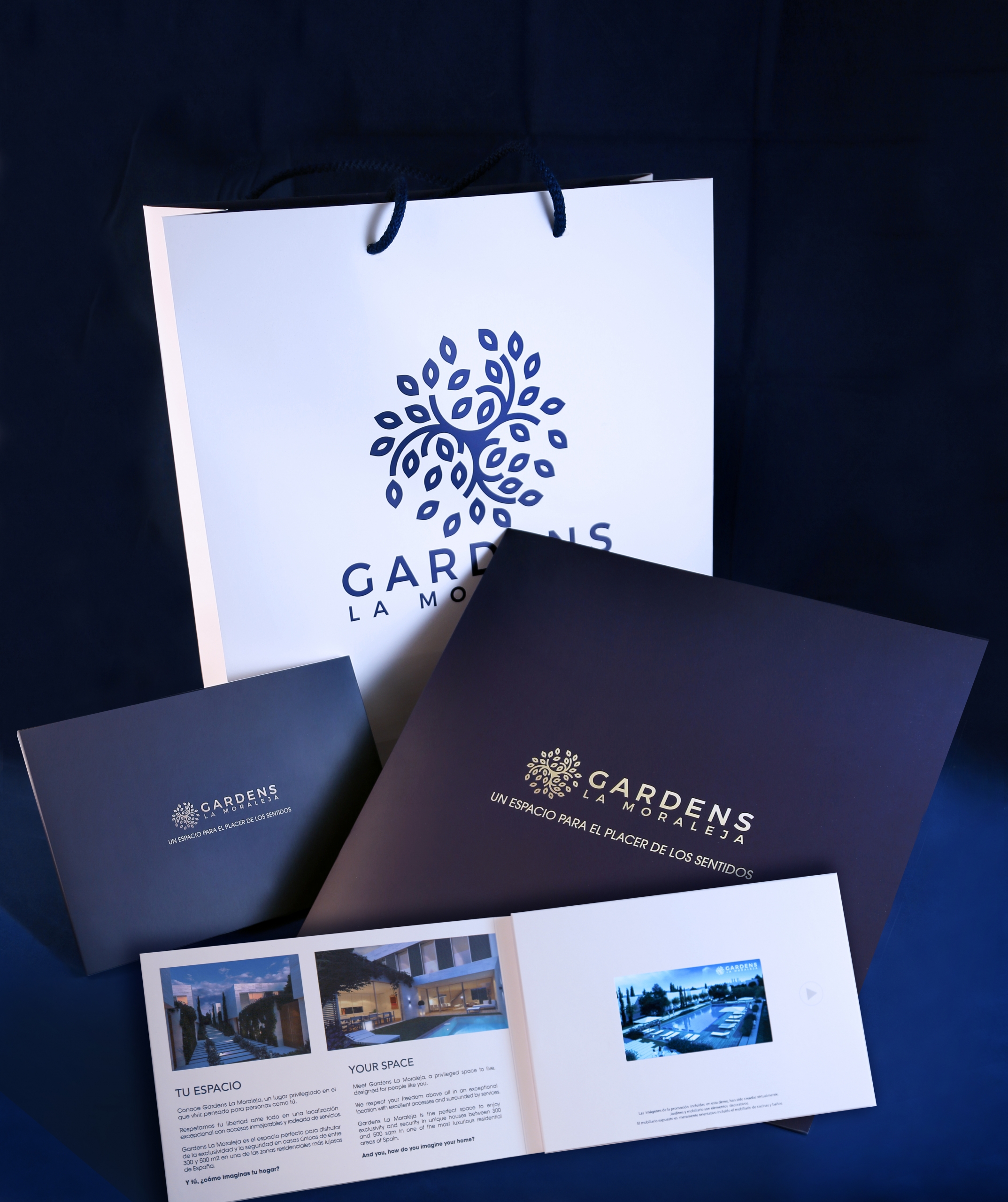 Se trata Gardens de una promoción de nueva generación, sobre todo en lo que se refiere a su calidad y «honestidad» cara al cliente. Es una promoción que no repara en detalles, y por tanto no lo han hecho tampoco en los materiales de venta, fundamentalmente bolsas, video dipticos y folletos, todos ellos producidos por Grupo Mirazul.